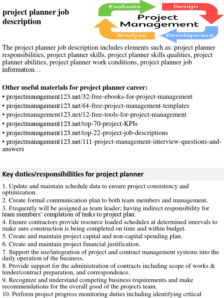 Other useful materials for project planner career: