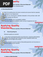 Standards and specifications that establish the quality