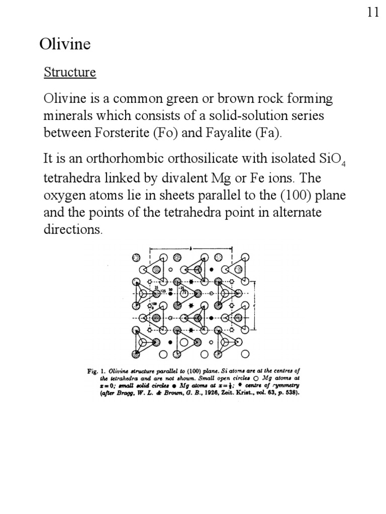Forsterite Mg2SiO4 to Fayalite Fe2SiO4.