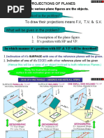 perpendicular to VP, inclined at 45o to HP and passing through right corner of the