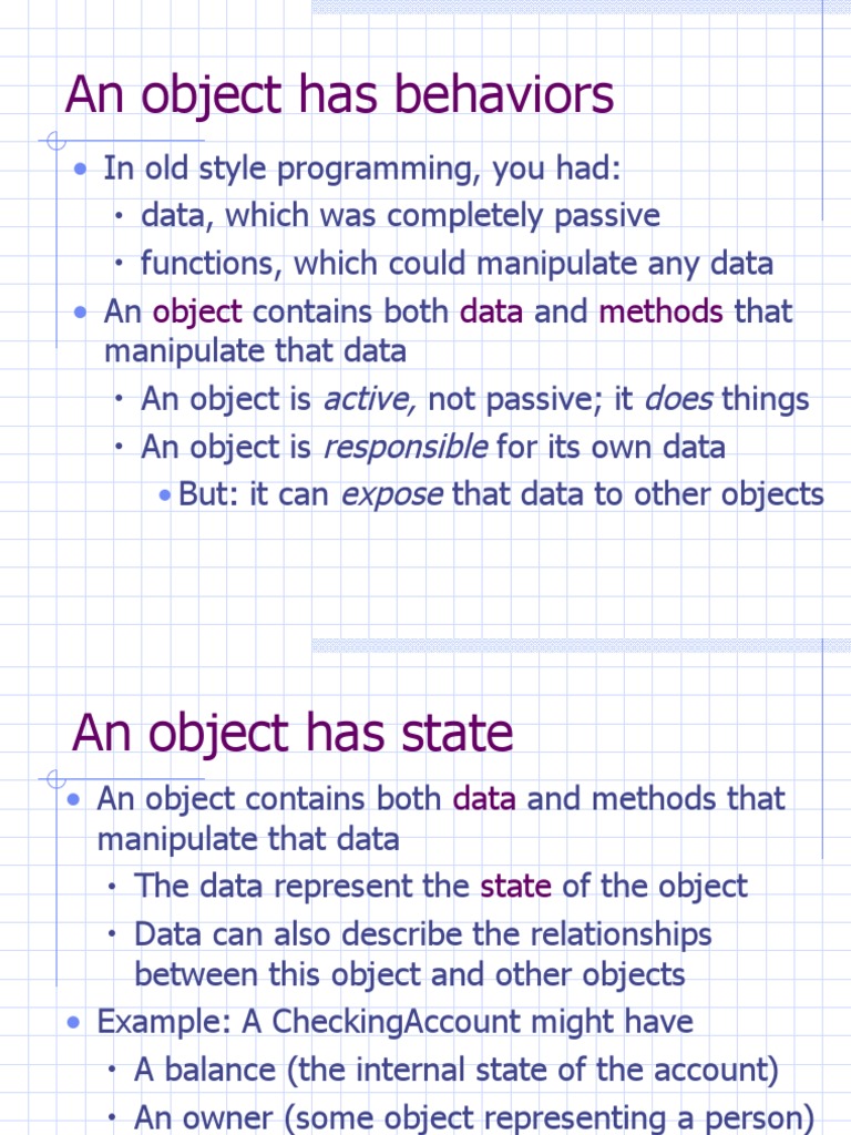 • An object is active, not passive; it does things