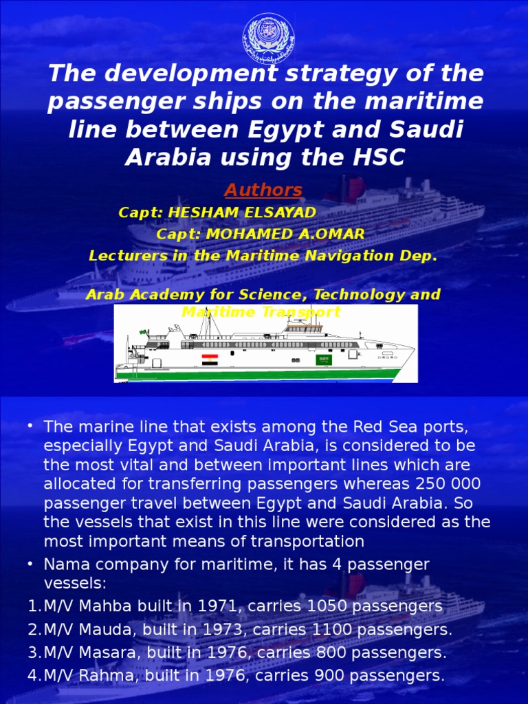 The national maritime, it has 2 passenger vessels:1. M/V Dahab, built in 1986, carries 1000 passengers.