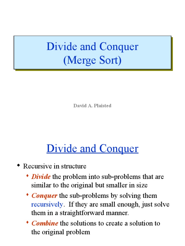 MergeSort (A, p, r) // sort A[p..r] by divide & conquer