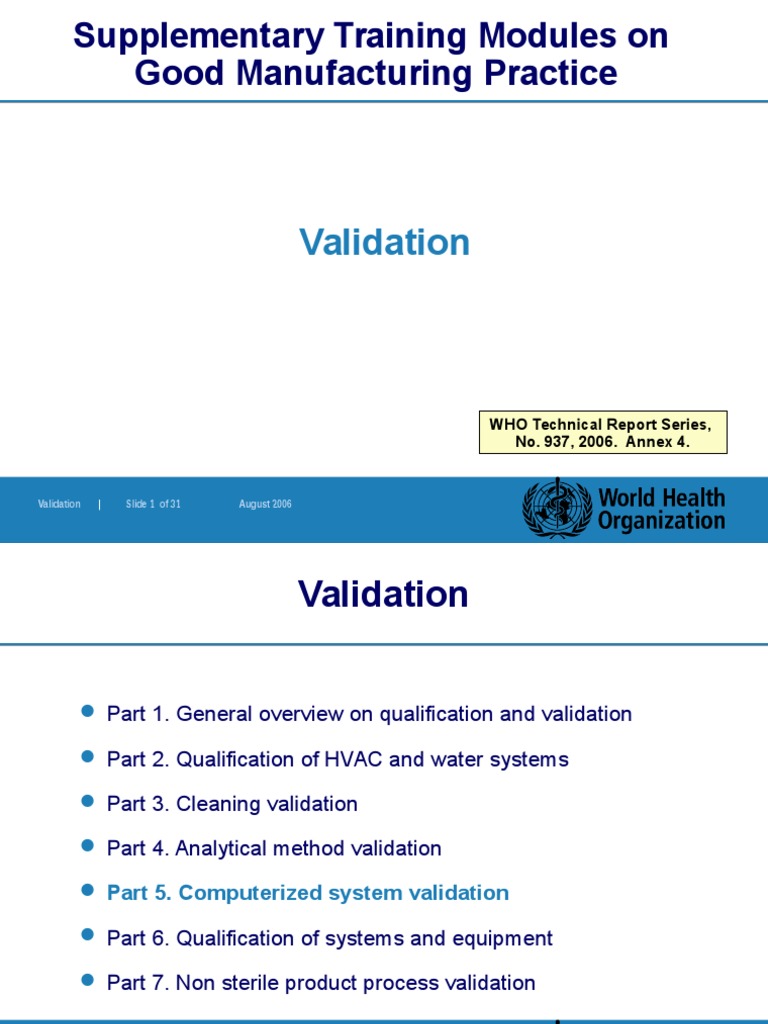 Summary: Validation requirements for Software (See Table 1 in notes)
