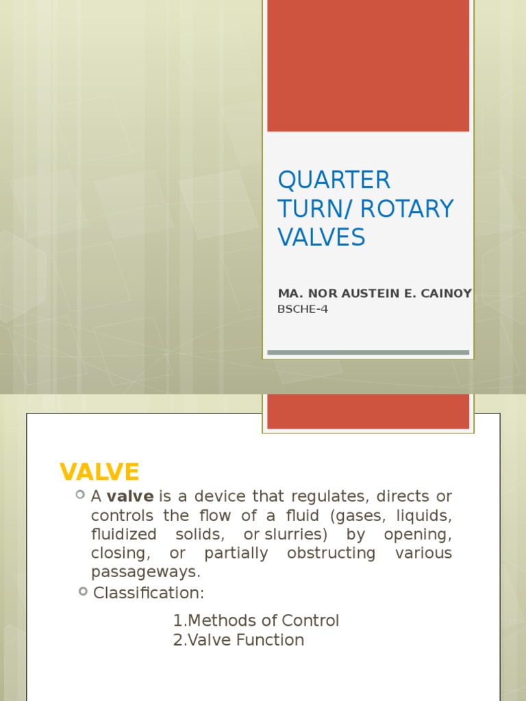 2. Rotary Motion Valves- rotate a disc or ellipse about an