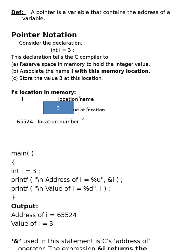 printf ( "\n Value of i = %d", *( &i ) ) ;