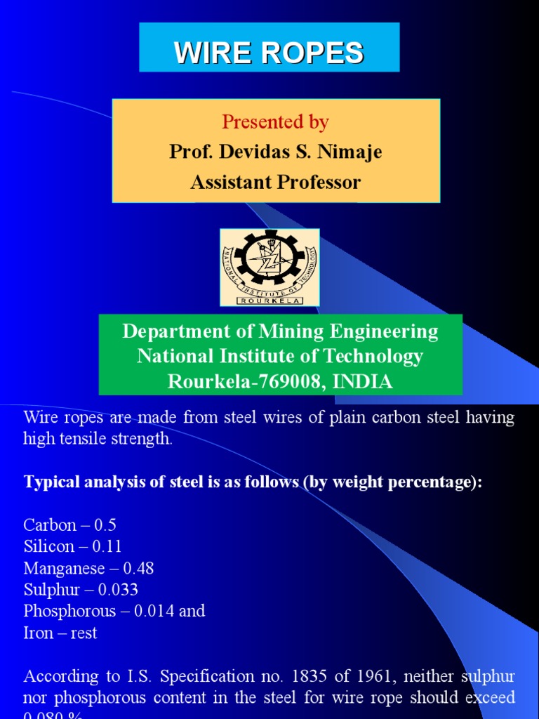 nor phosphorous content in the steel for wire rope should exceed