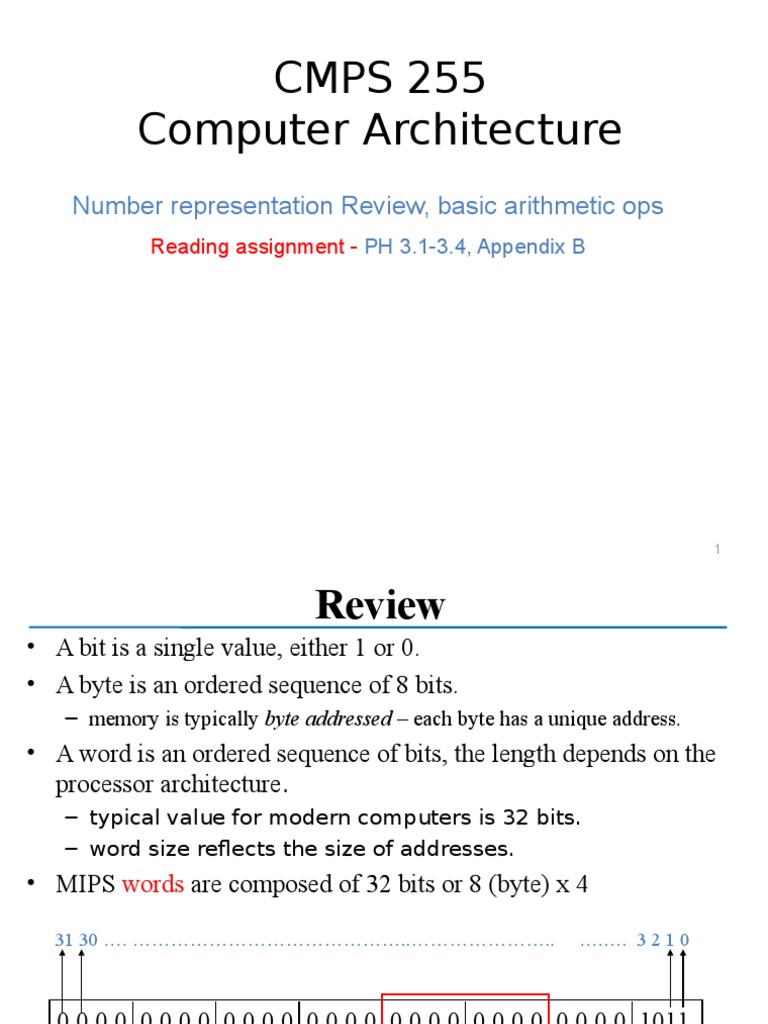 Number representation Review, basic arithmetic ops