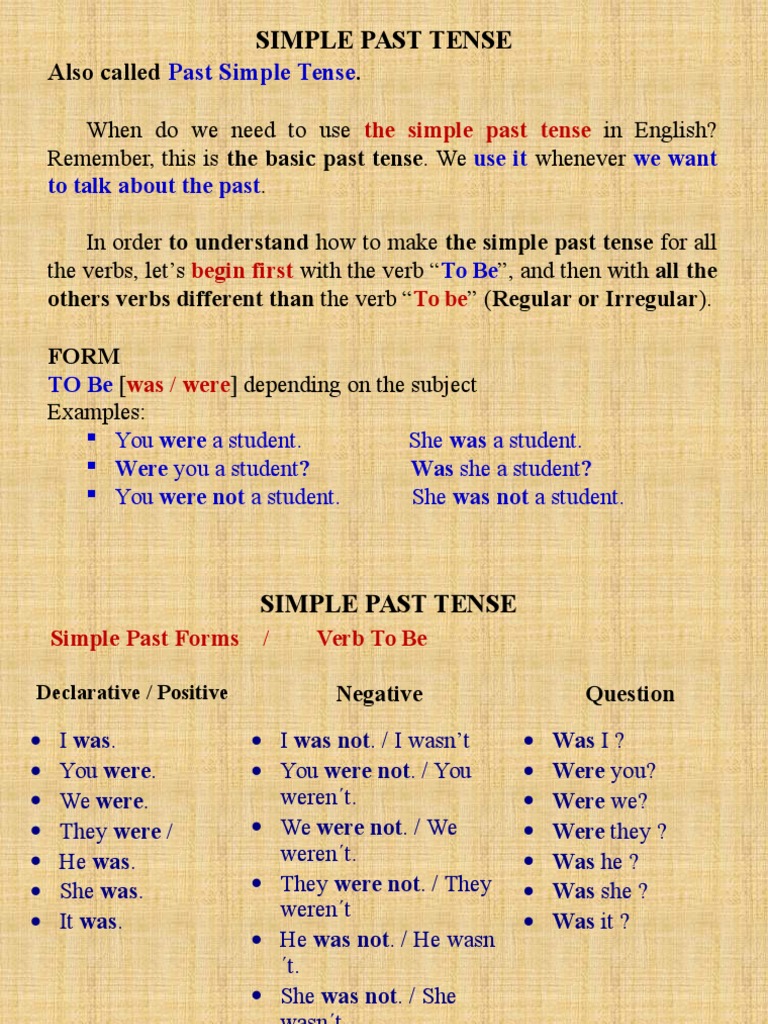 Simple Past Forms for Verbs others than the Verb To Be. (Regular