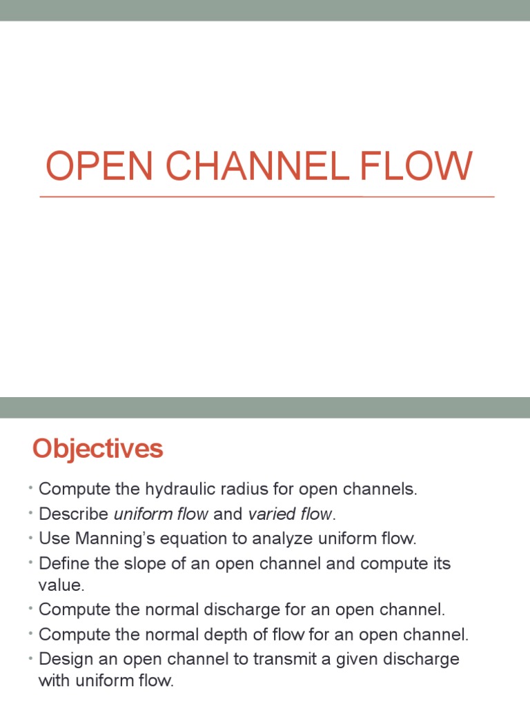 flow in open channels, and perform the necessary