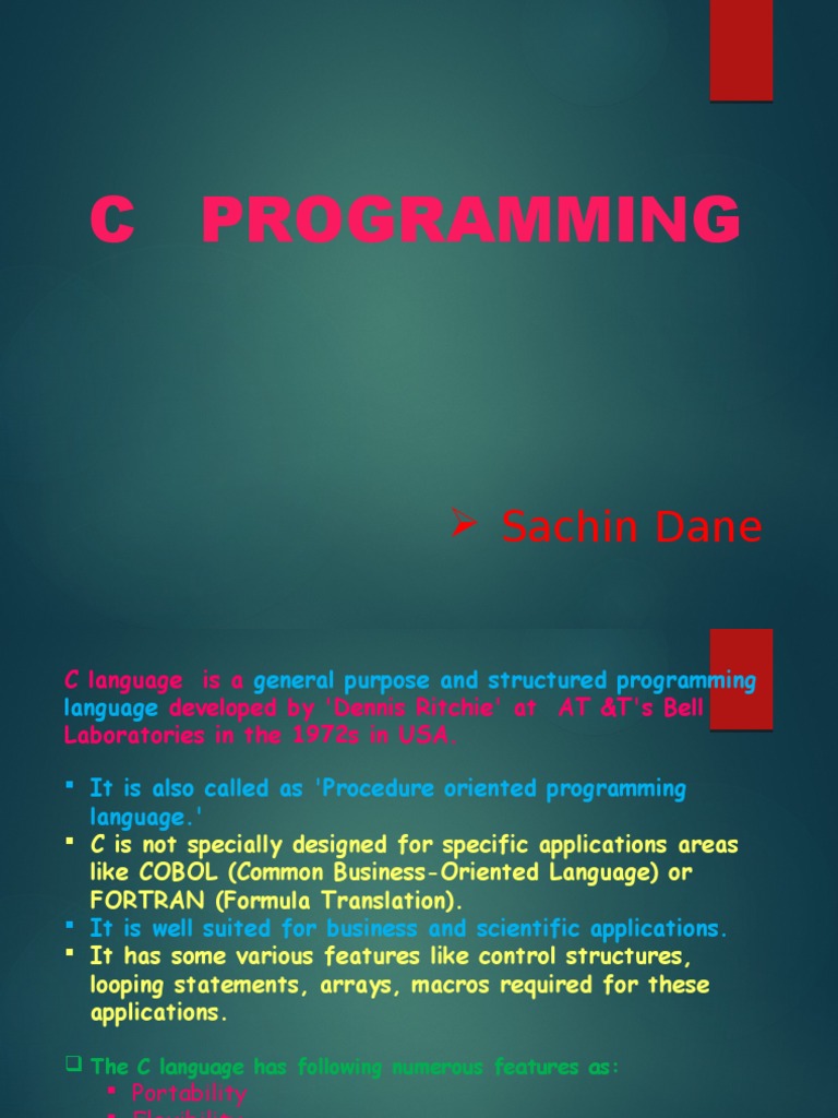 language developed by 'Dennis Ritchie' at AT &T's Bell