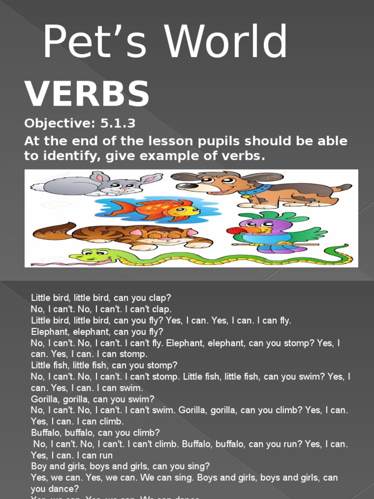 No, I can't. No, I can't. I can't climb. Buffalo, buffalo, can you run? Yes, I can.