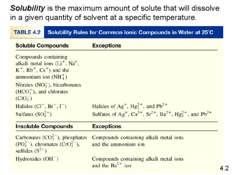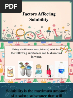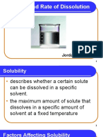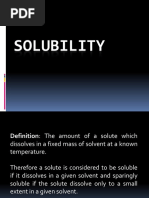 Solubility is the maximum amount of solute that can dissolve in a specific amount of solvent at a given temperature. The document defines solubility as the maximum amount of solute that will dissolve in a given quantity of solvent at a specific temperature.
