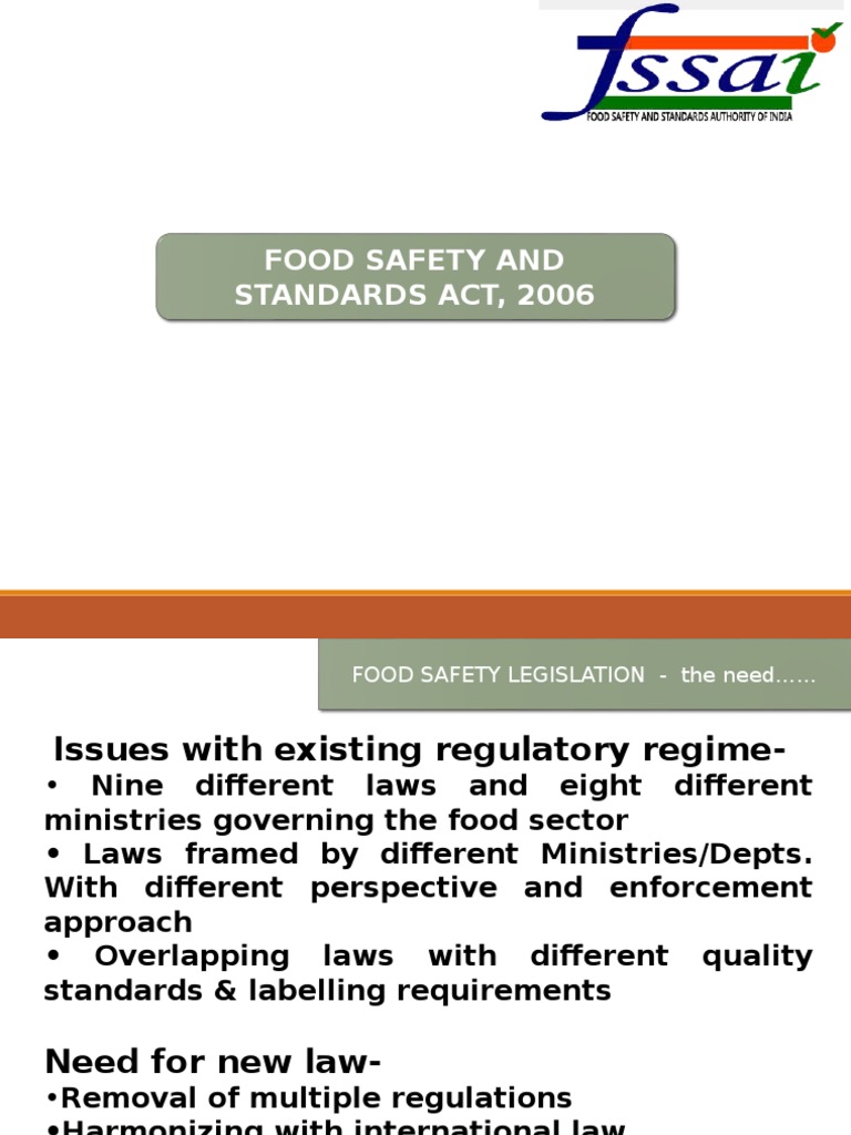FOOD SAFETY LEGISLATION - the need