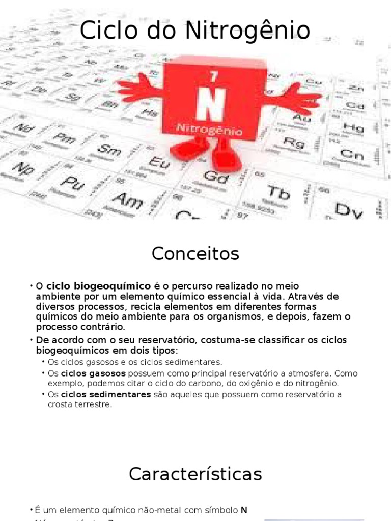 exemplo, podemos citar o ciclo do carbono, do oxignio e do nitrognio.