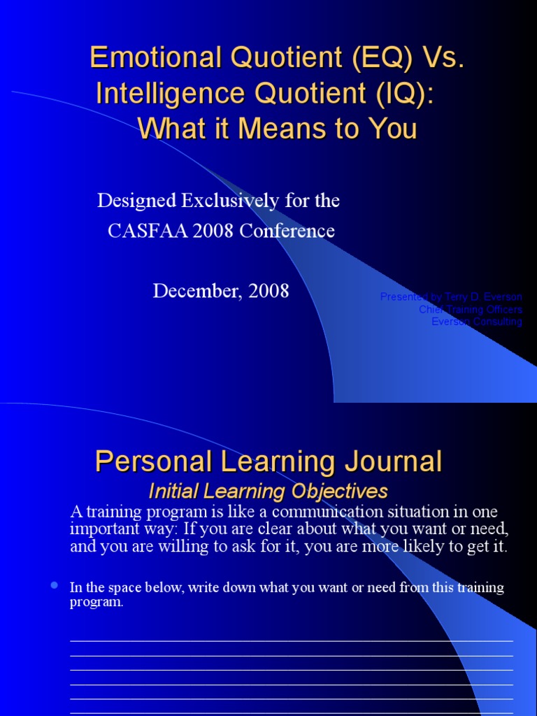 Emotional Intelligence Your ability to use both emotions and cognitive skills in