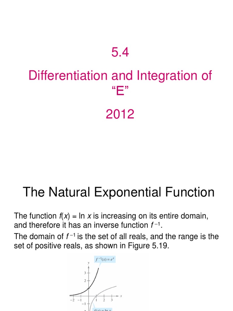 1. The domain of f ( x) e x is -, , and the range is 0, .
