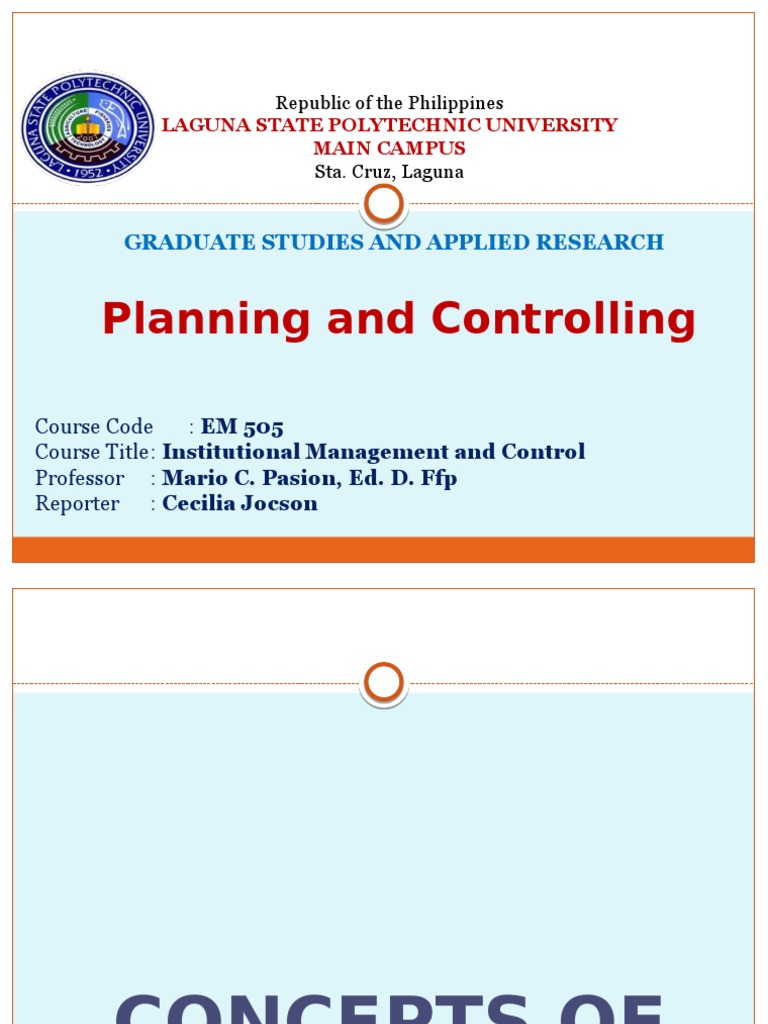 Planning and Controlling