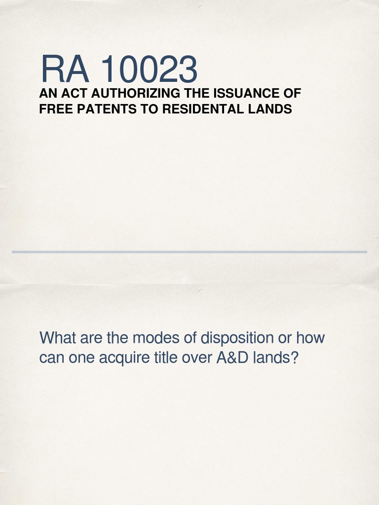 -authorizes issuance of a free patent title to residential lands