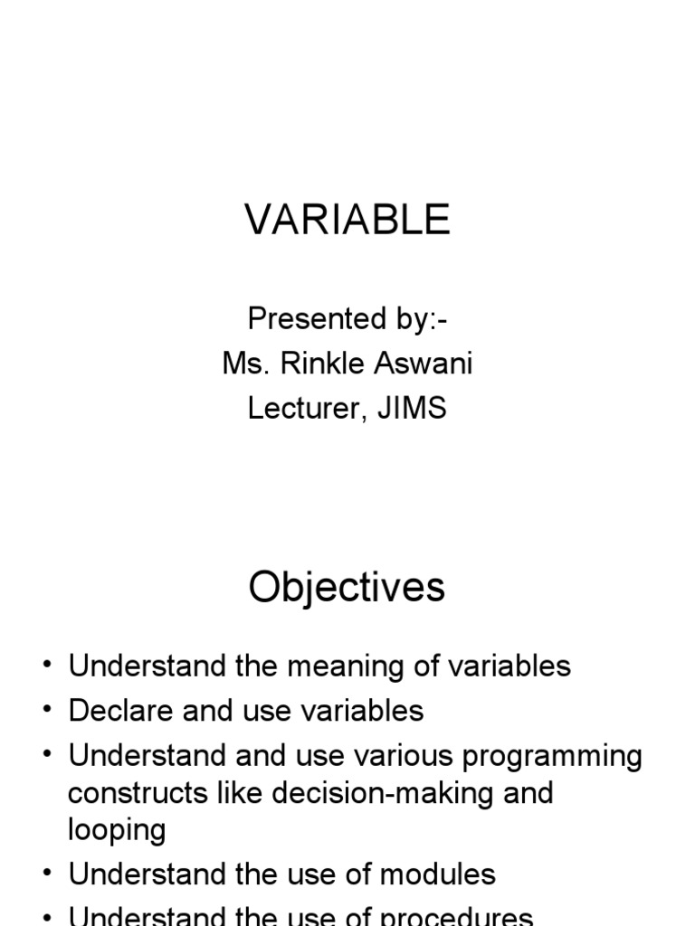 • Understand the meaning of variables