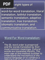 Faithful translation: it attempts to produce the precise