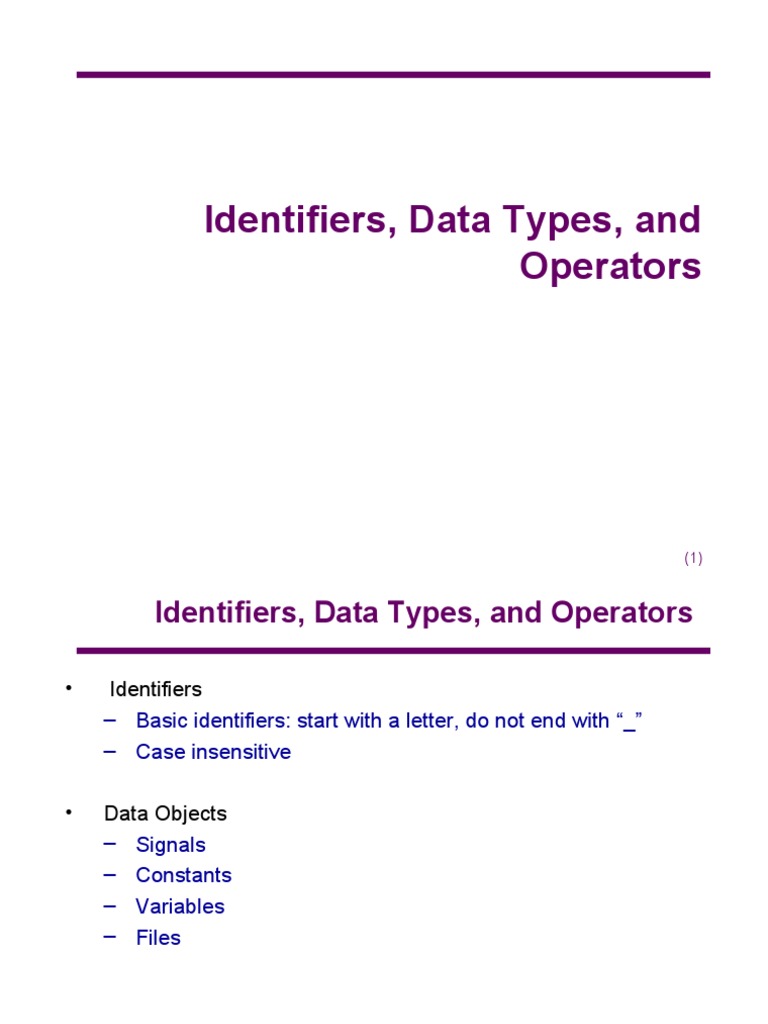 •VHDL ‘93 vs. VHDL ‘87 operators
