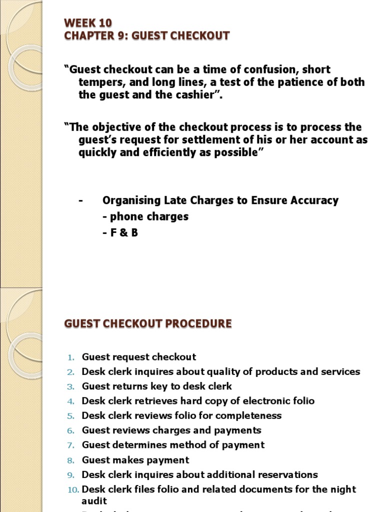 RELAYING GUEST DEPARTURE TO OTHER DEPARTMENT