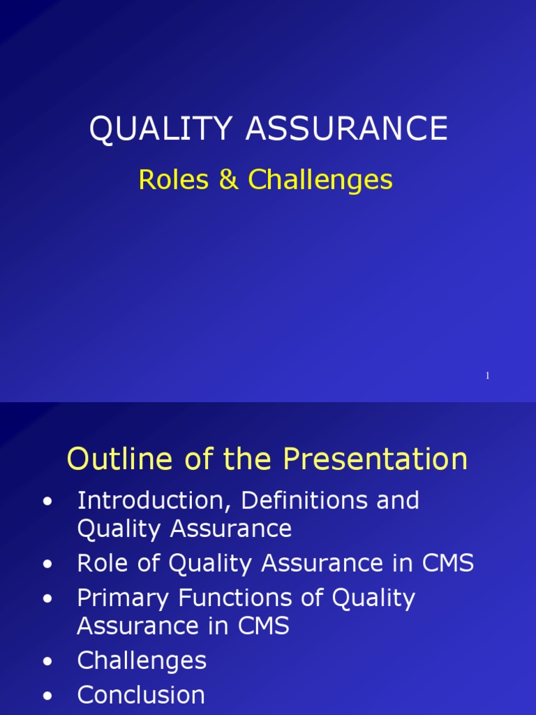 Role of Quality Assurance in CMS