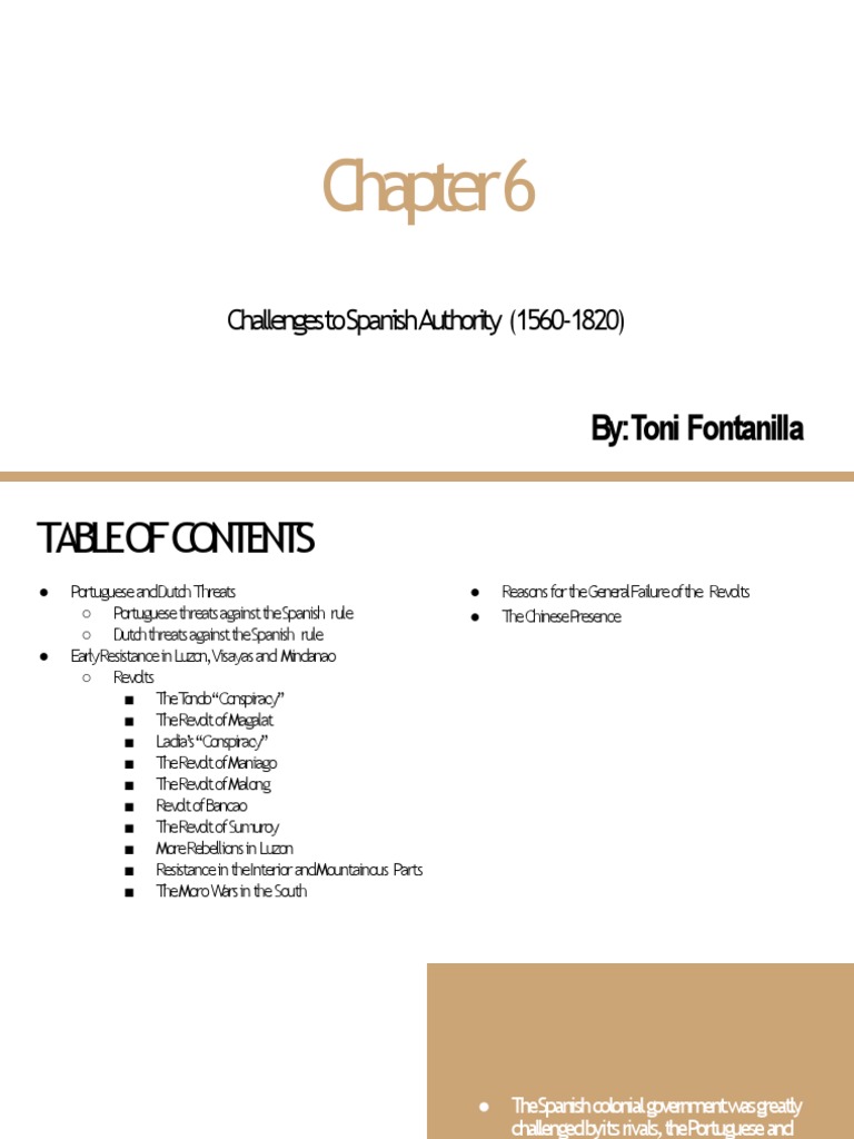 bythePortuguese,DutchandvariousprovincesofLuzonandVisayas;and(4) IslamprovidedtheSpaniards and