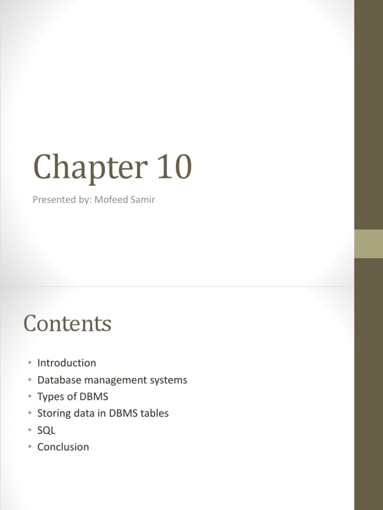 • SQL is a set based, rather than a procedural (e.g., Visual Basic)