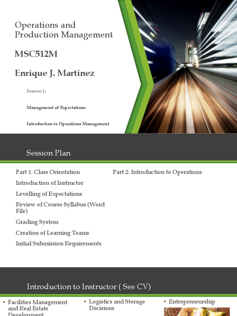 Part 1: Class Orientation Part 2: Introduction to Operations
