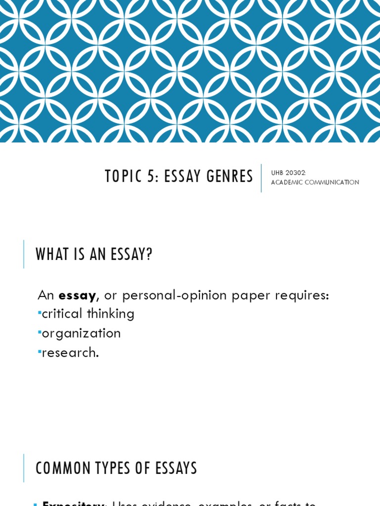 TOPIC 5: ESSAY GENRES UHB 20302: