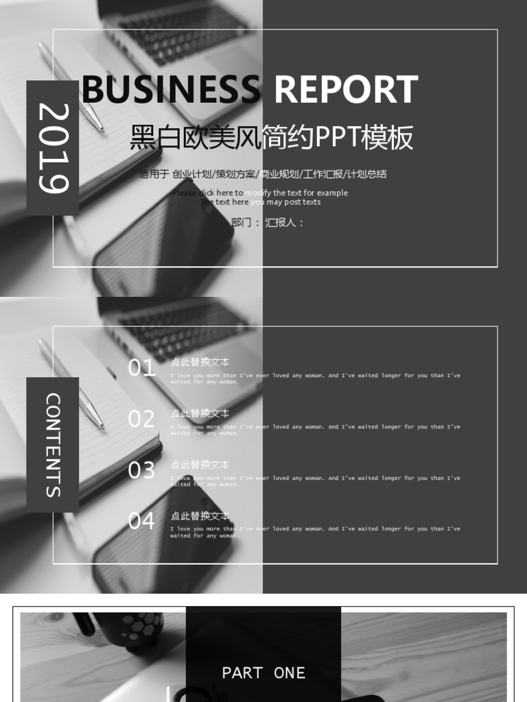 黑白欧美风简约PPT模板