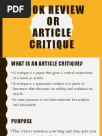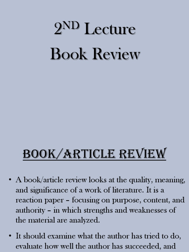 • A book/article review looks at the quality, meaning,
