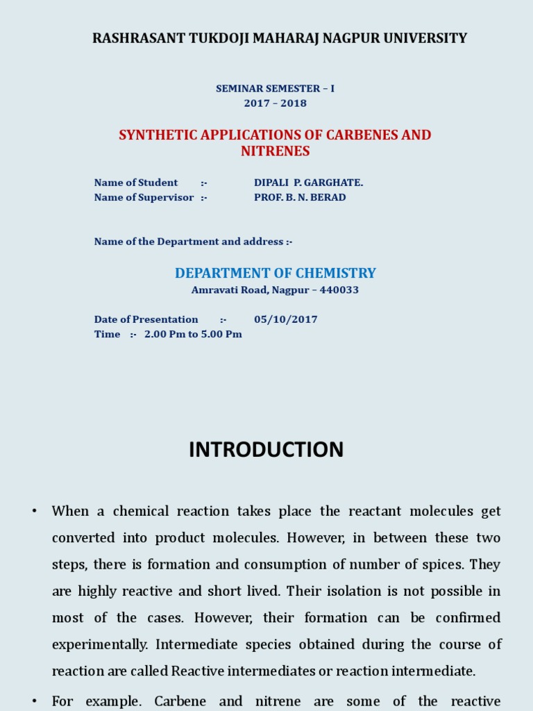 • For example. Carbene and nitrene are some of the reactive
