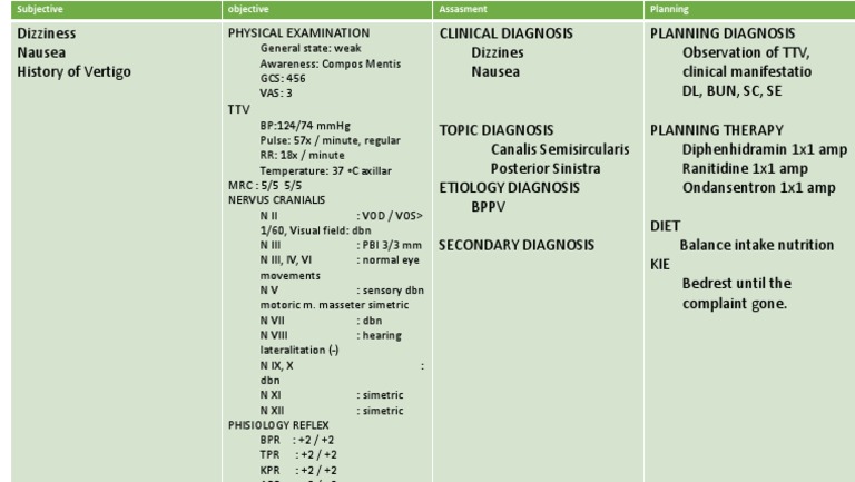 History of Vertigo GCS: 456 Nausea clinical manifestatio