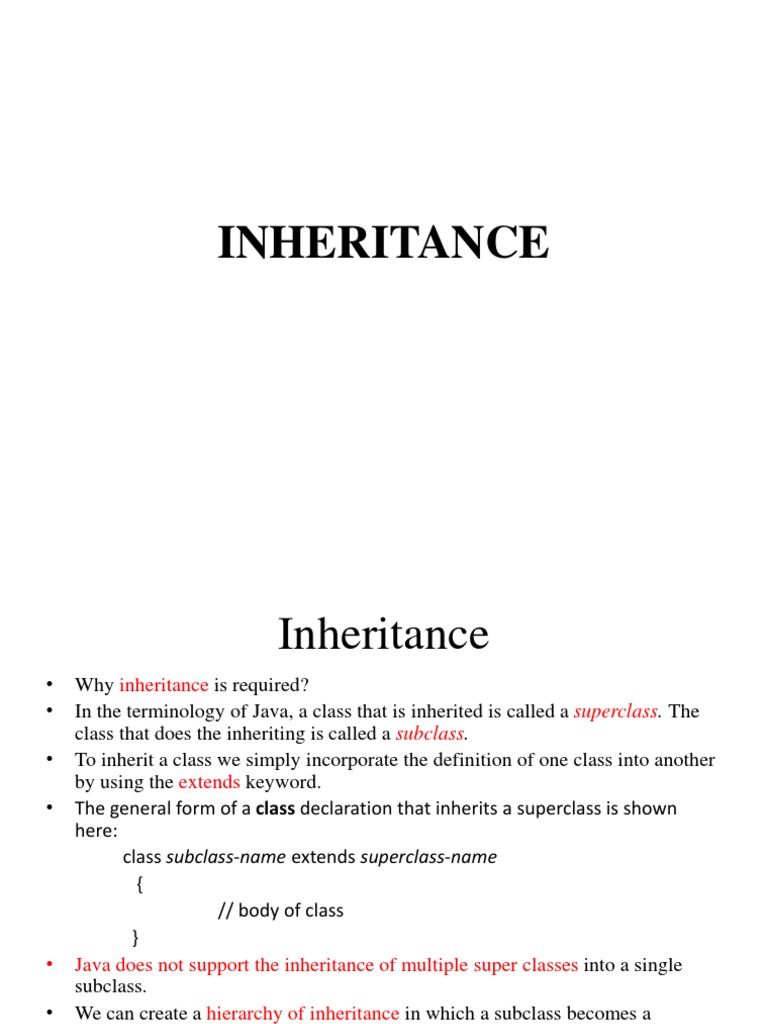 • In the terminology of Java, a class that is inherited is called a superclass. The