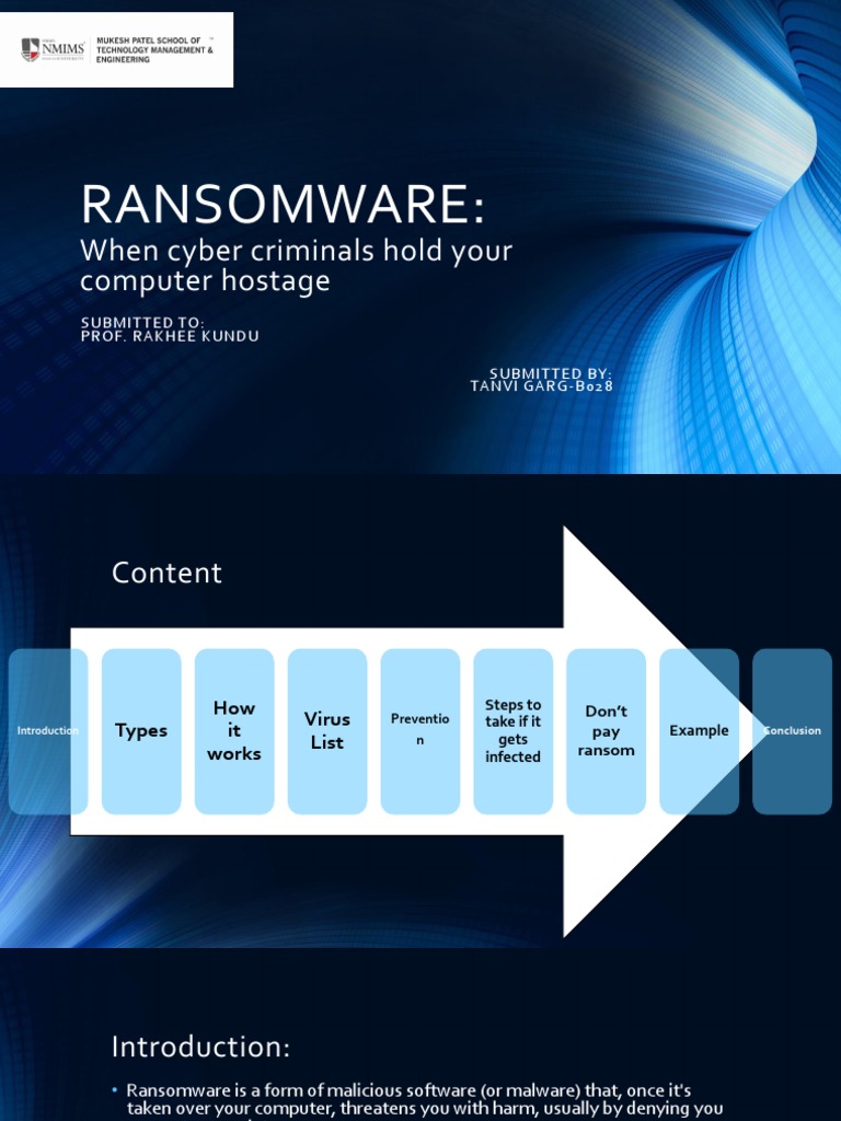 • Ransomware is a form of malicious software (or malware) that, once it's