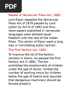 • Repeal of Vernacular Press Act 1882, the much denounced vernacular press
