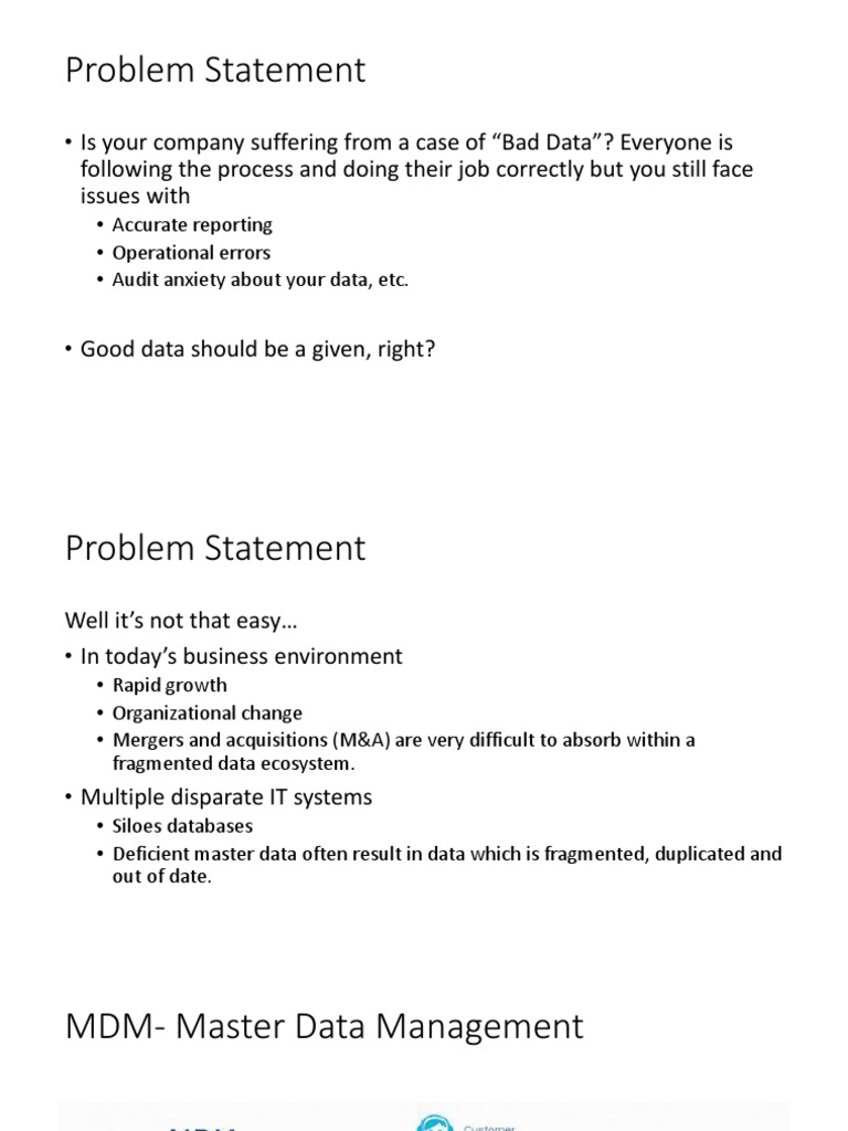• Deficient master data often result in data which is fragmented, duplicated and