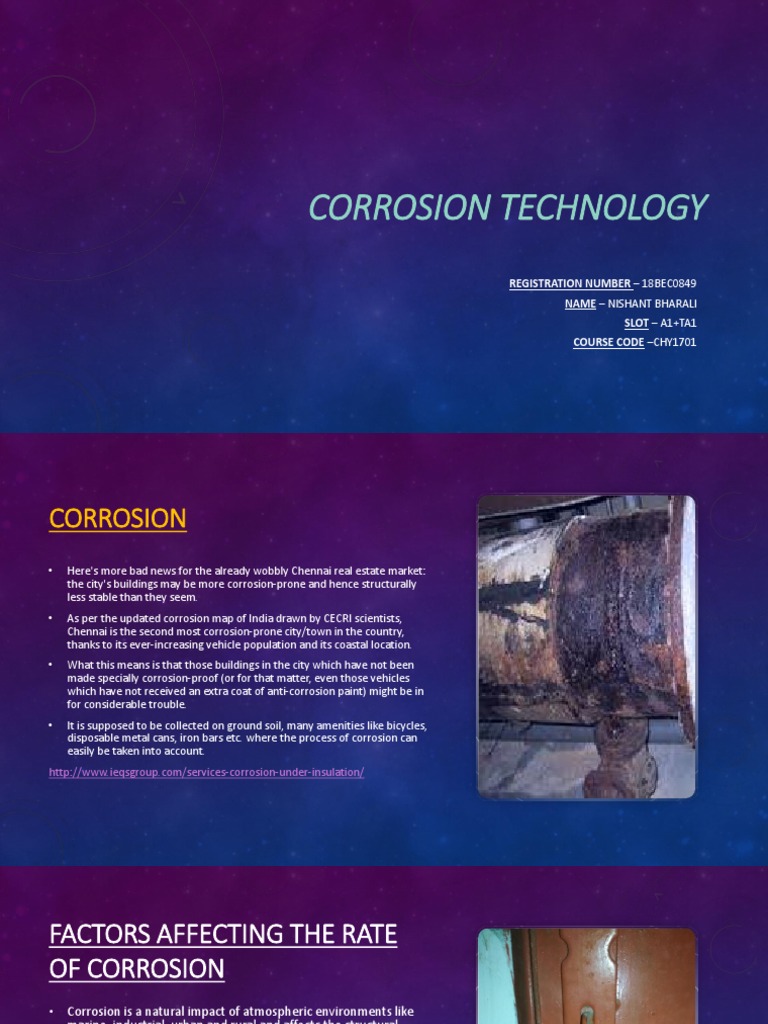 disposable metal cans, iron bars etc. where the process of corrosion can