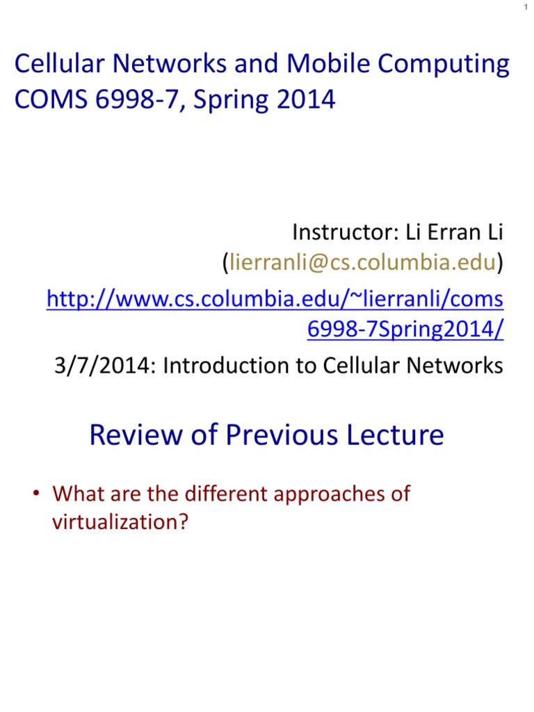 3/7/2014: Introduction to Cellular Networks