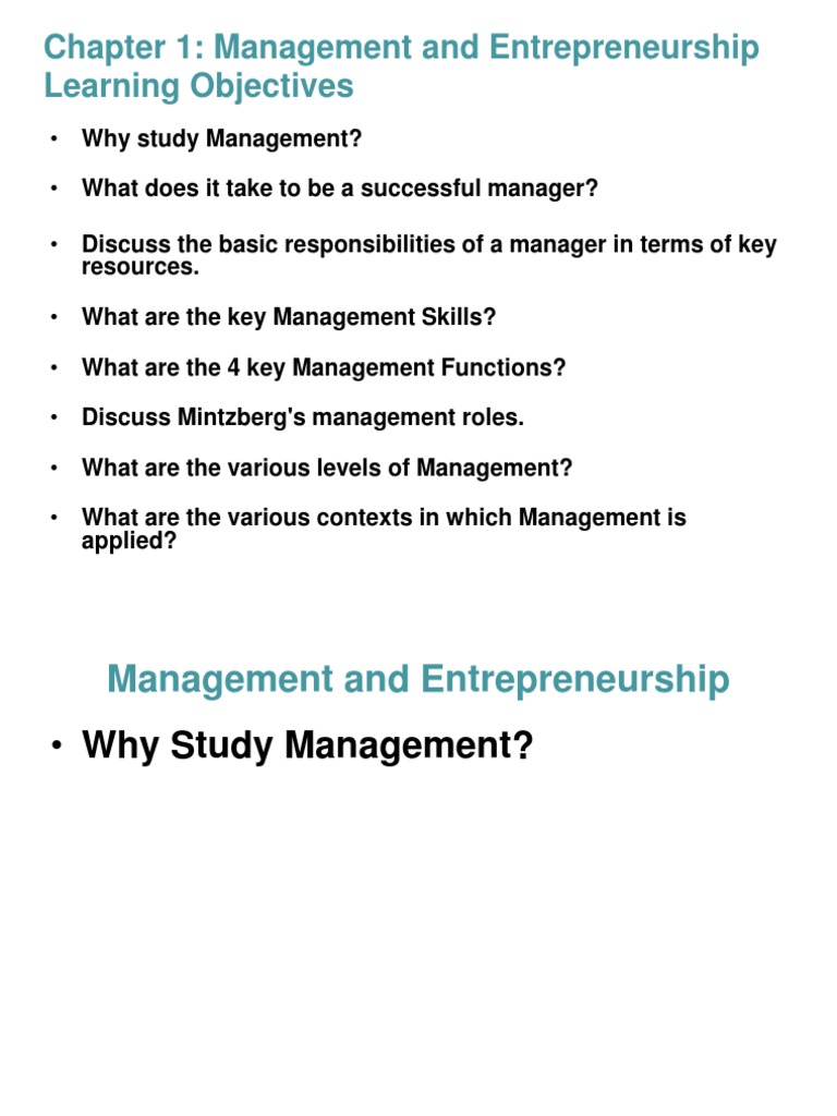 Chapter 1: Management and Entrepreneurship