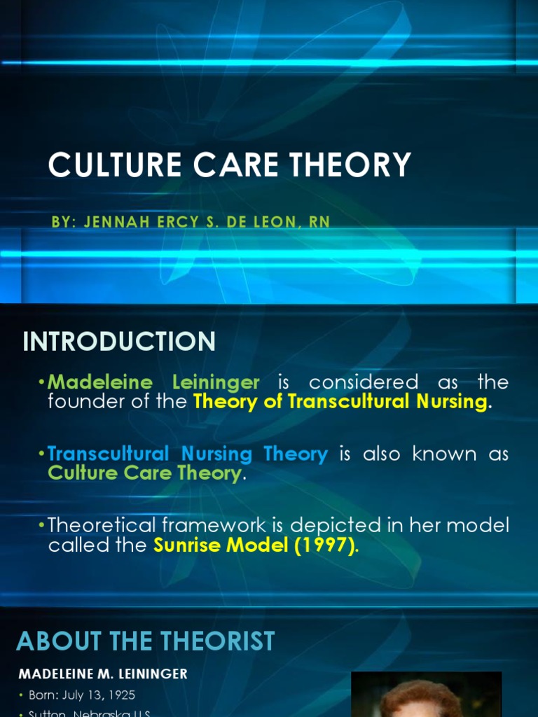 • 1. CULTURAL CARE PRESERVATION OR MAINTENANCE - refers to nurses'