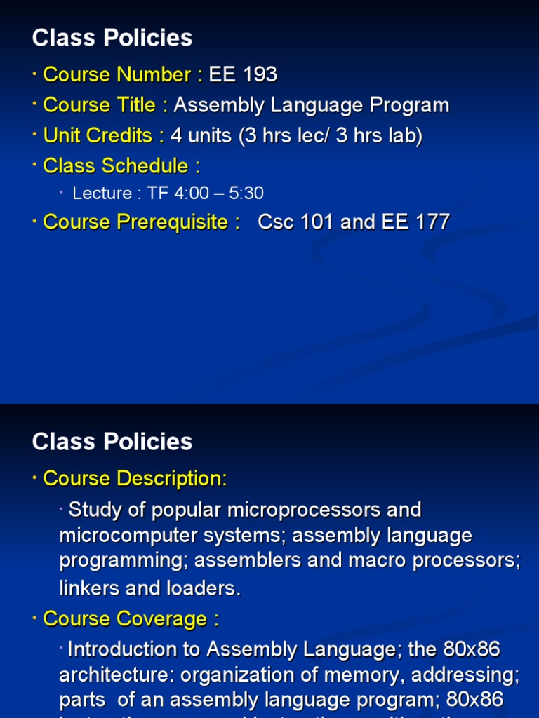 • Course Title : Assembly Language Program