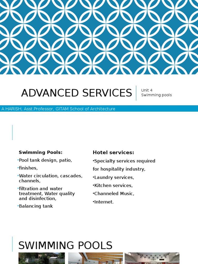• A swimming pool is a structure designed to hold water to enable swimming or other