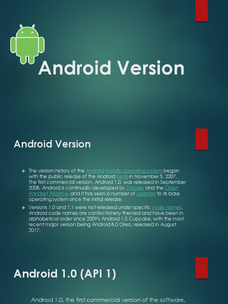 alphabetical order since 2009's Android 1.5 Cupcake, with the most