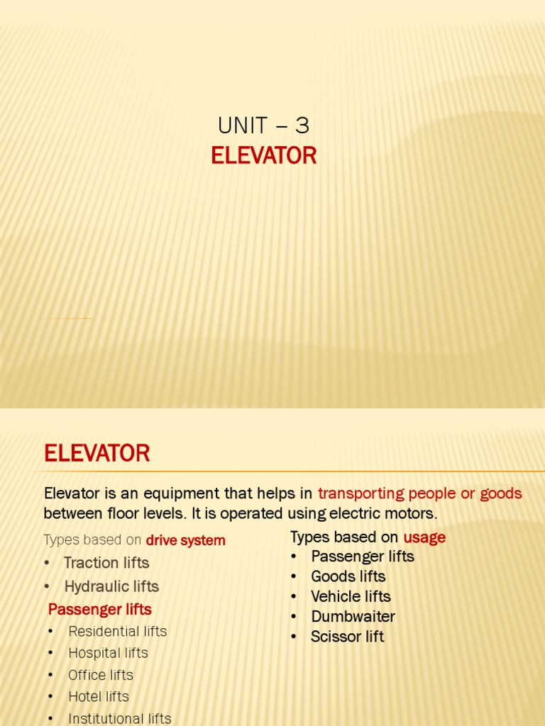 the elevator. These include the drive motor, brake, speed reduction unit, sheaves and