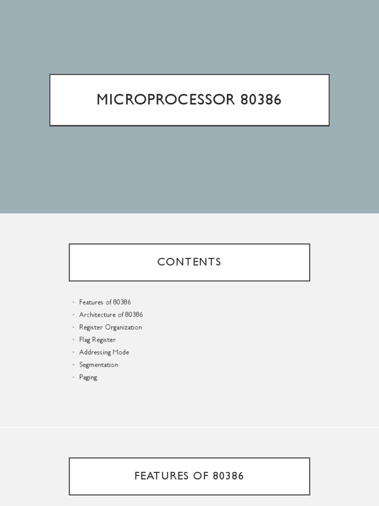 • Control Registers: The 80386 has three 32 bit control registers CR0, CR2 and
