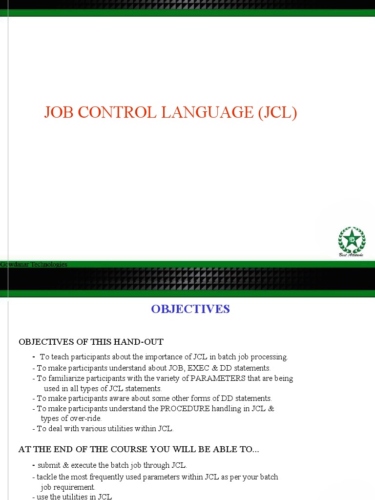 • JCL control statements are organized into groups of work called Jobs.